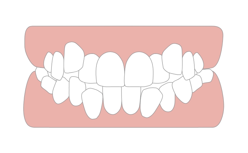 歯のでこぼことは叢生(そうせい)・ 乱杭歯(らんぐいば)ともいい、顎の大きさと歯の大きさのバランスが取れておらず、顎に歯が入りきらないためででこぼこになっている状態をいいます。