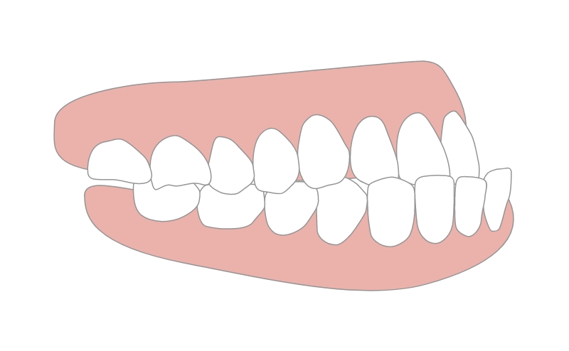 下顎前突、反対咬合ともいいます。噛み合わせた時に下の歯が上の歯より前側にあることをいいます。