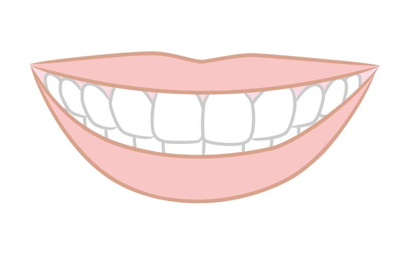 スマイルラインとは、笑顔をつくった時に見える下唇のラインと上あごの前歯の先端を横に結んだラインのこと。